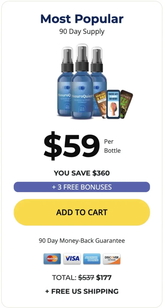 That’s why the clear recommendation is: buy only from the Official NeuroQuiet Website. This way, you guarantee authenticity, exclusive bonuses, and the refund policy.